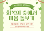 충주어울림센터, 녹색자금 숲체험교육 선정 충주어울림센터 이용인들이 산림치유 프로그램에 참여하고 있다. ⓒ 충주어울림센터 [충북일보] 충주어울림센터가 2026년도 녹색자금 공모사업 '취약계층 숲체험교육 지원 사업'에 선정돼 정신질환 취약계층을 위한 산림치유 프로그램을 본격 운영한다. 충주어울림센터는 사회복지법인 숭덕원 산하 정신재활시설로, 이번 사업 선정에 따라 10월까지 '회복의 숲에서 마음 돌보기' 프로그램을 진행한다고 2일 밝혔다. 이번 사업은 한국산림복지진흥원이 주관하는 2026년 녹색자금기금 숲체험교육 사업의 일환으로, 정신질환으로 어려움을 겪고 있는 취약계층을 대상으로 연 11회 운영된다. 산림치유 활동을 통해 신체적·정신적·사회적 회복을 돕고, 사회참여 기회를 확대하는 것이 목적이다. 센터는 사업 홍보 및 참여자 모집을 시작으로 당일형 숲체험교육 8회, 숙박형(1박 2일) 숲체험교육 3회를 진행할 계획이다. 주요 프로그램으로는 숲 해설, 숲 트래킹, 산림 레포츠, 목재 체험, 자연물 체험 등 다양한 체험 활동이 마련된다. 한금희 관장은 "녹색자금 공모사업 선정으로 정신질환으로 어려움을 겪는 분들에게 산림치유 활동을 통한 회복의 기회를 제공할 수 있게 돼 뜻깊다"며 "숲체험교육을 통해 참여자들이 한 단계 성장해 지역사회에서 더욱 건강하고 행복하게 생활하길 바란다"고 말했다. 이번 사업은 산림청과 한국산림복지진흥원, 복권위원회의 지원을 받아 복권기금으로 운영된다. 충주 / 윤호노기자